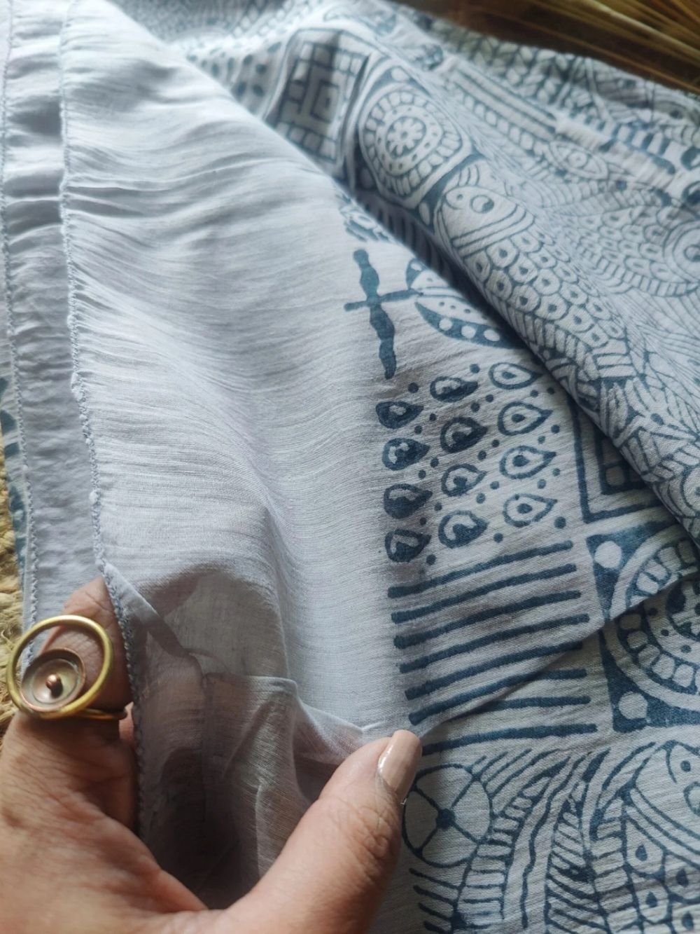 Icy Blue Sea : Block Printed Saree