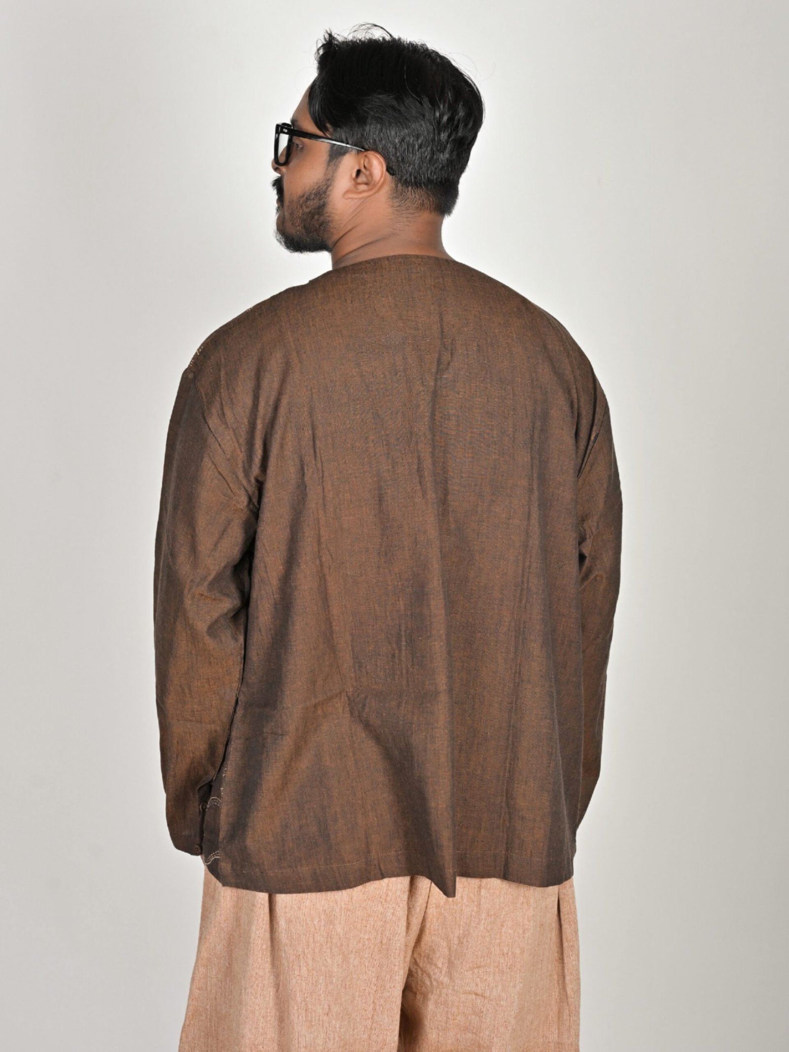Introducing our short kurta-style full shirt, this unisex piece is made of pure handloom cotton in a range of earthy and muted hues.