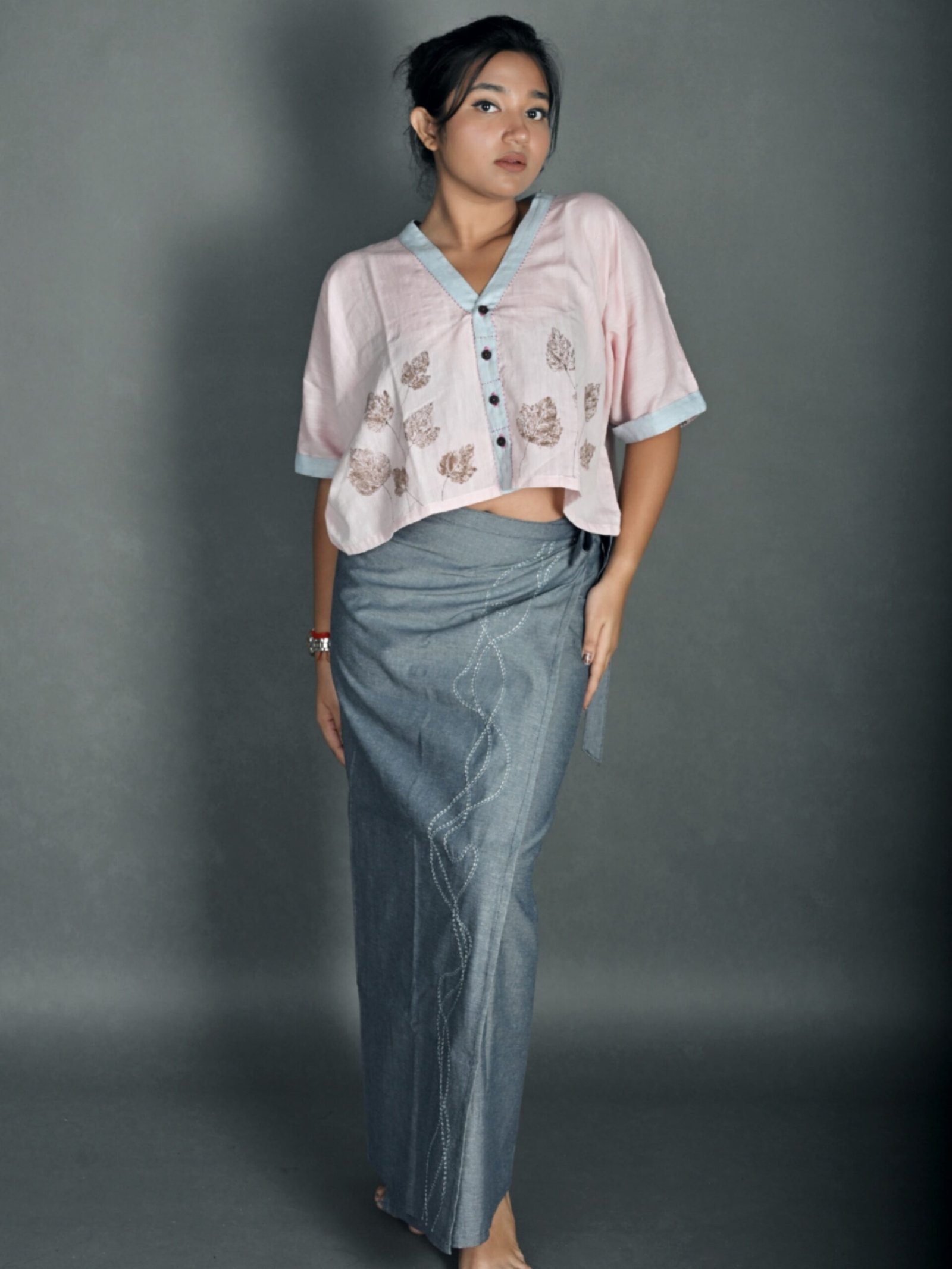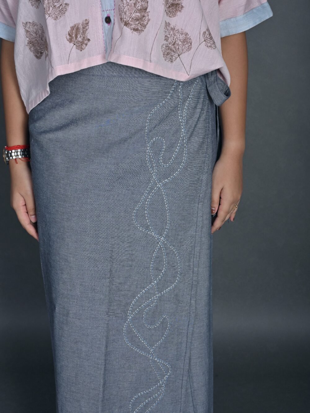 This autumn/winter we bring you our maxi wrap skirts. Made with durable hand-woven cotton denim fabric, these are versatile pieces suitable for both summer and winter. The fabric is strong yet super absorbent and breathable making it suitable for all the seasons. Embellished with hand-embroidered abstract designs, these skirts can be styled in numerous ways as their fabric gets softer with every wash.