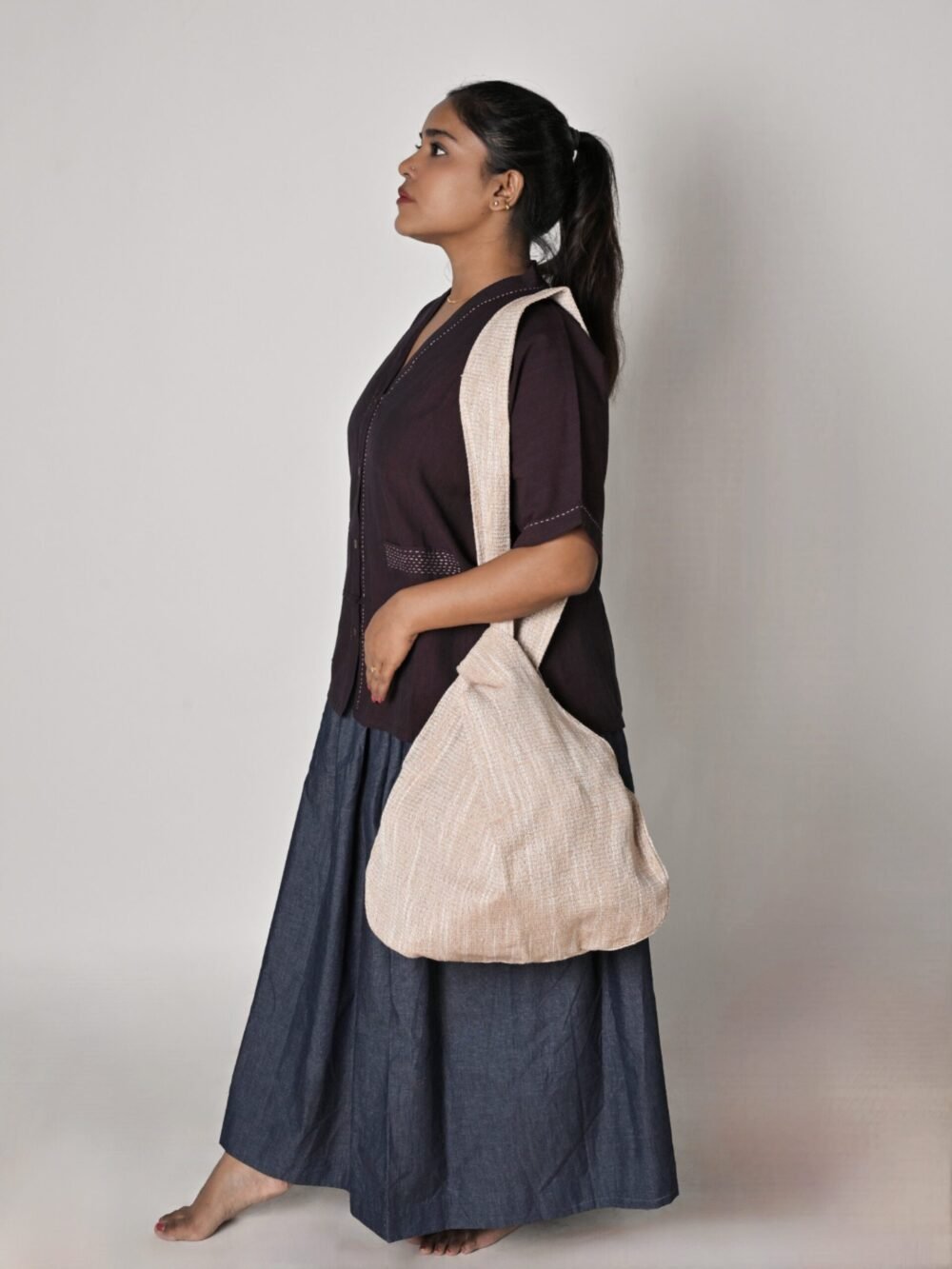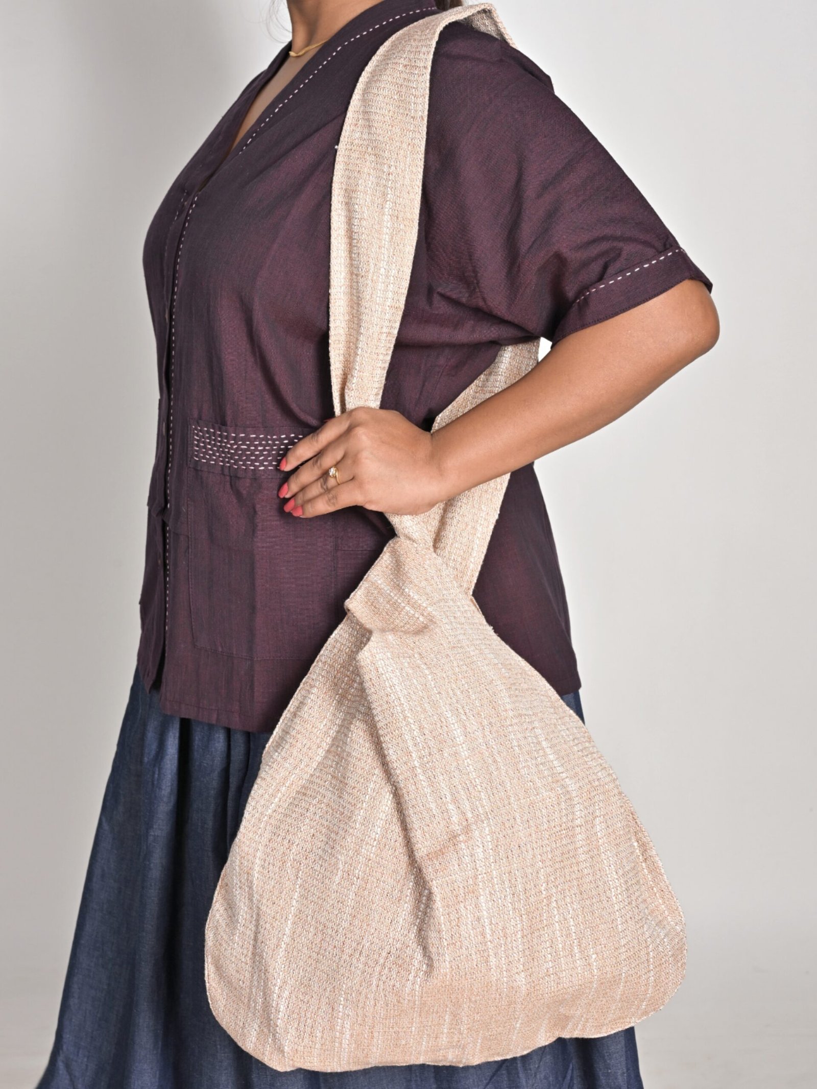 These are our I-shop-sustainably-but-like-to-carry-my-own-snacks kind of knot tote bags. Feel free to hang one on your shoulder and show off your chic yet minimalistic and intellectual yet bohemian style.