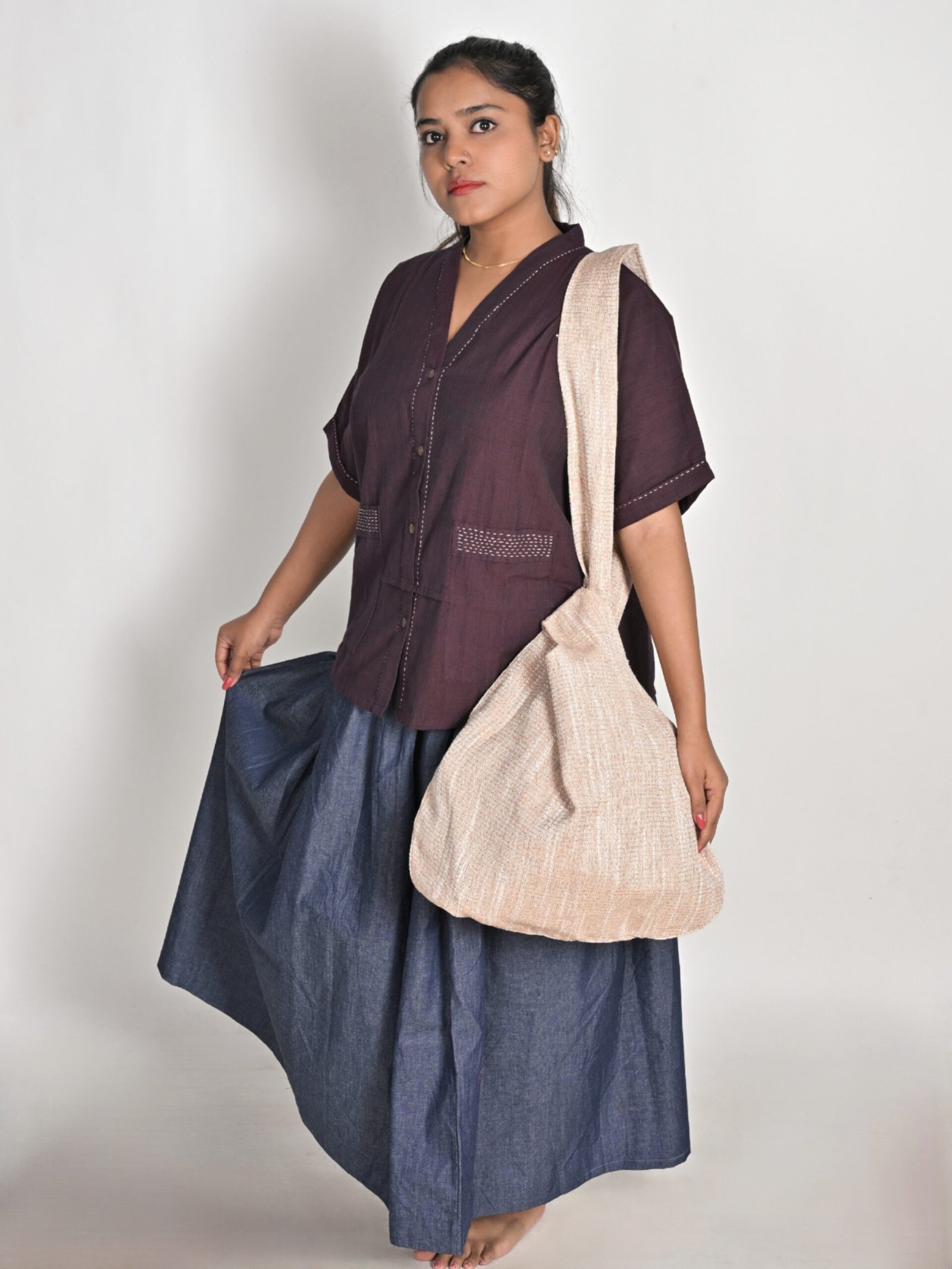 Fabric : Hand-woven, handloom jute-cotton with pure cotton lining