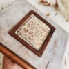 Cover – Raw pure silk fabric, handmade clay embellishments and frame.