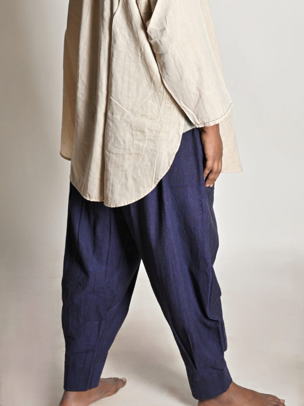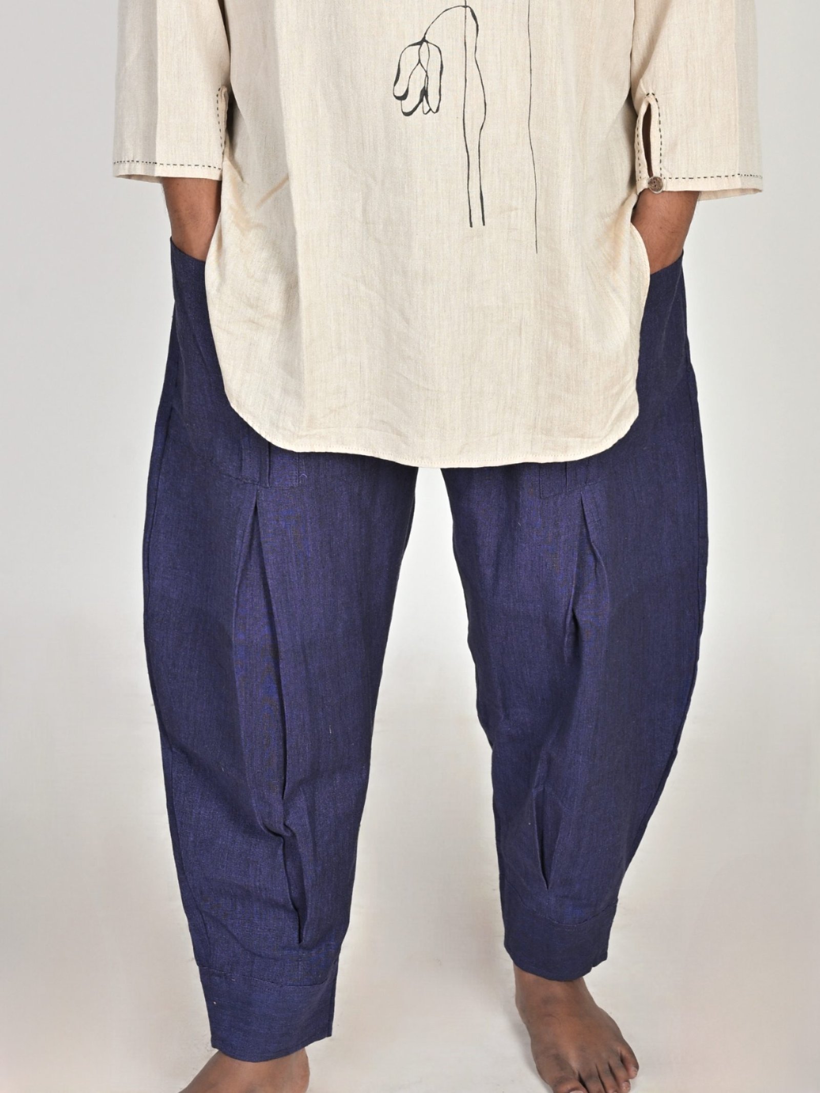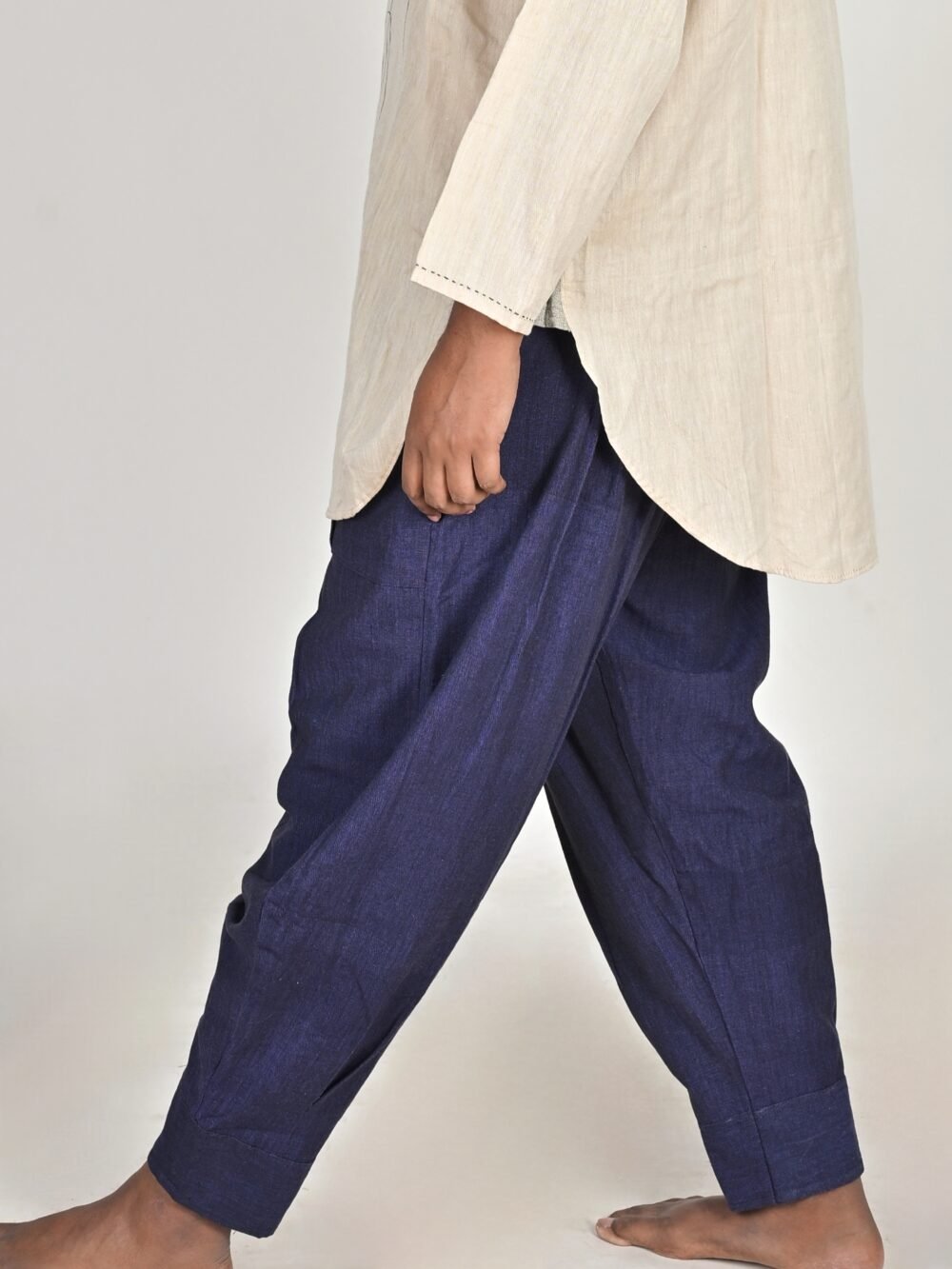 These pants are the comfiest and the best selling pair of pants in our range of unisex bottomwear. Made from our signature pure hand-woven handloom cotton that is durable and soft at the same time, it becomes softer with each wash and takes your shape just like any happily broken-in shoe.