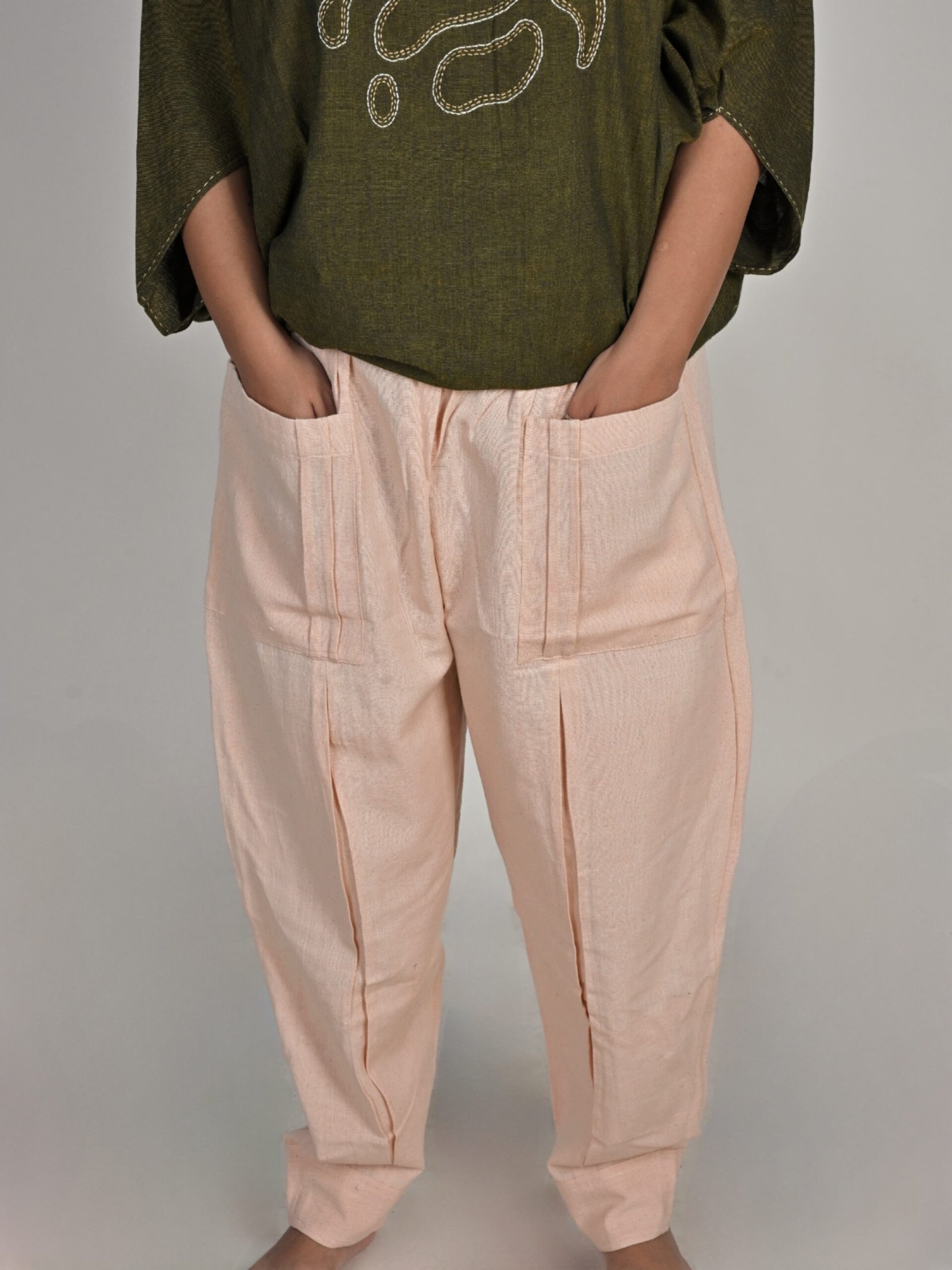 These pants are the comfiest and the best selling pair of pants in our range of unisex bottomwear. Made from our signature pure hand-woven handloom cotton that is durable and soft at the same time, it becomes softer with each wash and takes your shape just like any happily broken-in shoe.